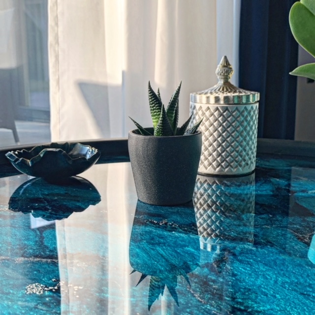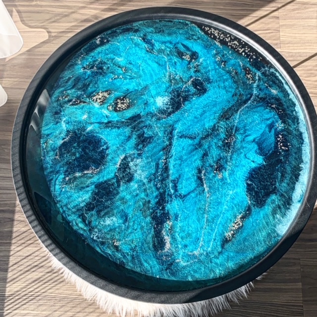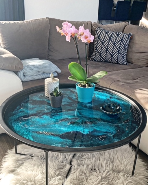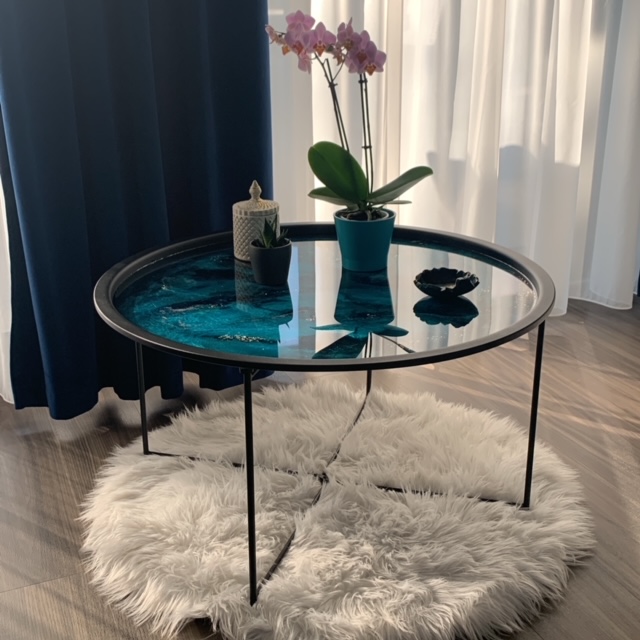 Ez a fekete dohányzóasztal epoxigyantából, kézzel készült termék, mely egyedi felülete, és színvilága miatt, igazán különlegessé fogja varázsolni otthonodat. Bármit tehetsz rá, amit egy asztalra is például: gyertyát, vázát, kávét, süteményes tálat,de már önmagában is tökéletes kiegészítője lakásodnak. Ha egyedi asztalra vágysz, akkor megtaláltad, mert ilyen biztosan nem lesz senkinek rajtad kívül. :)