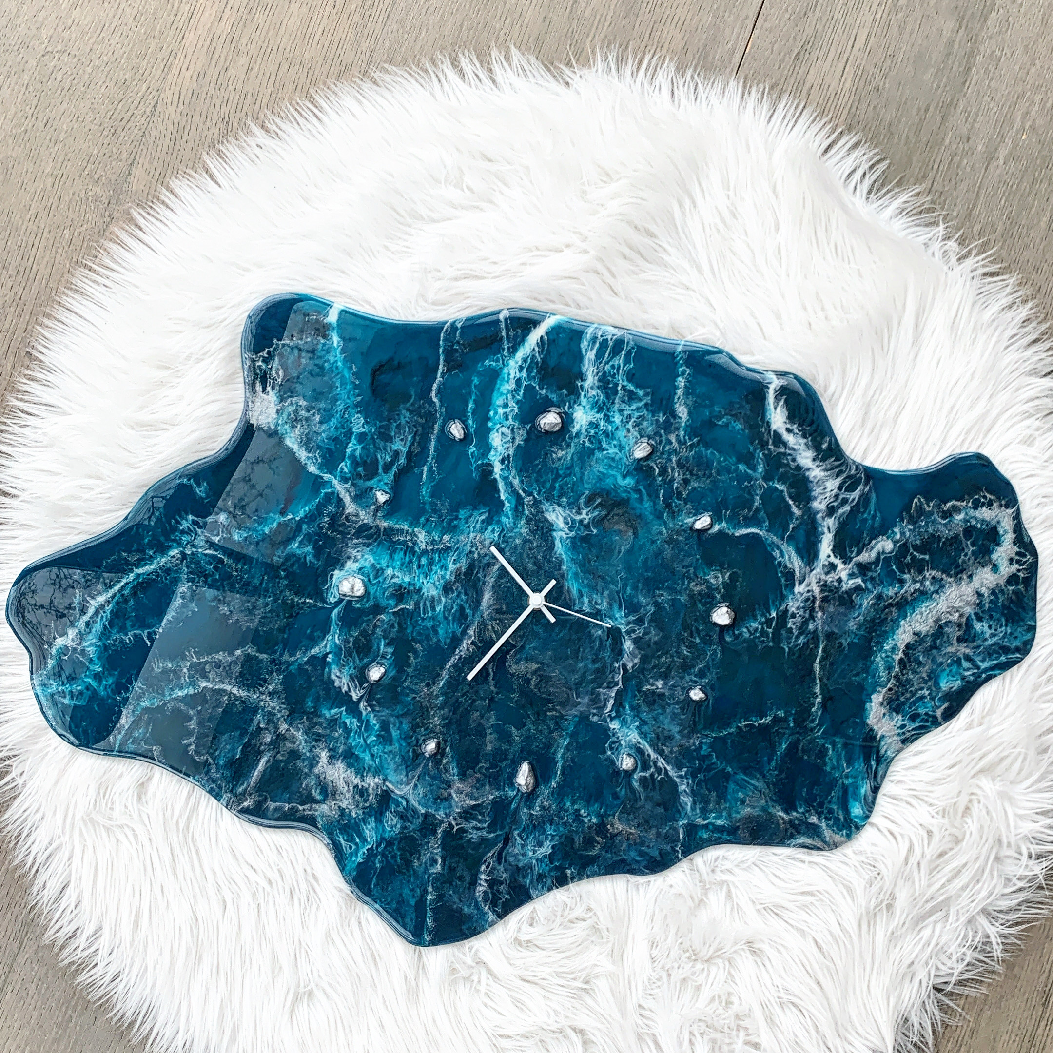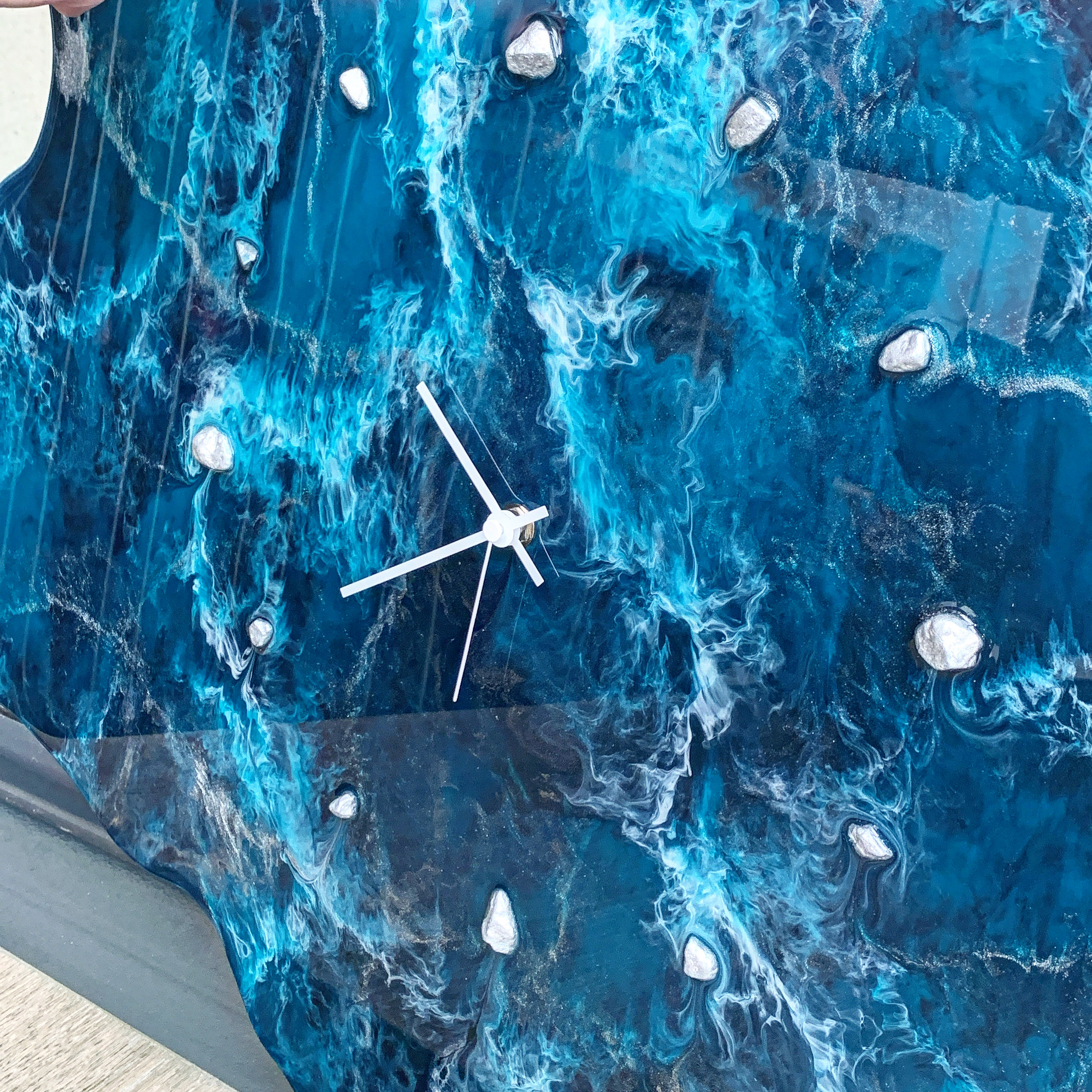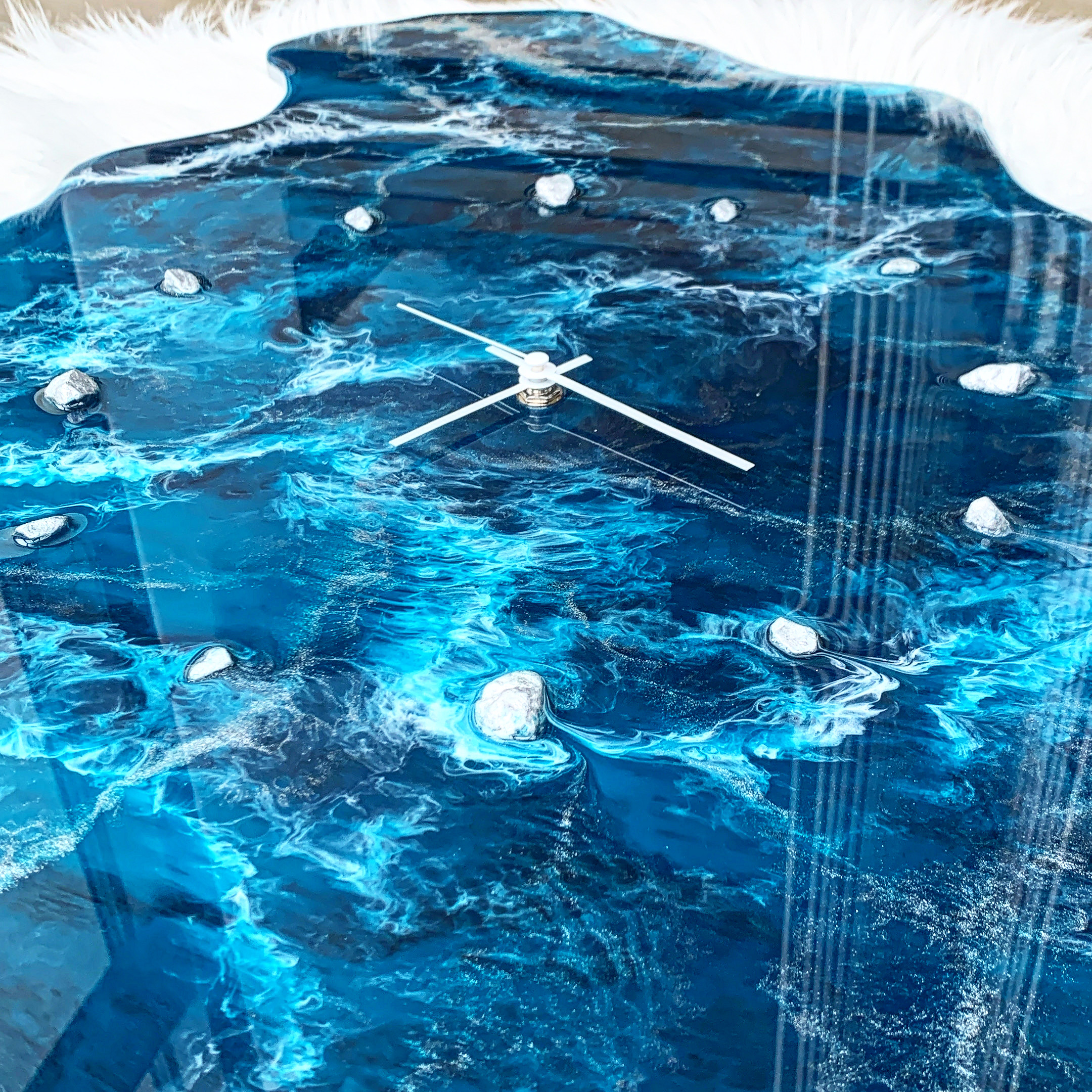 A falióra hátulja akasztóval felszerelt! A kép fa alapra készült, epoxy gyantával öntöttem rá a mintát. Olyan különleges éke lehet otthonodnak, amilyen biztosan csak neked lesz, senki másnak. Fantasztikus ajándék ötlet is bármilyen alkalomra, legyen az születésnap, névnap, esküvő, évforduló, stb.