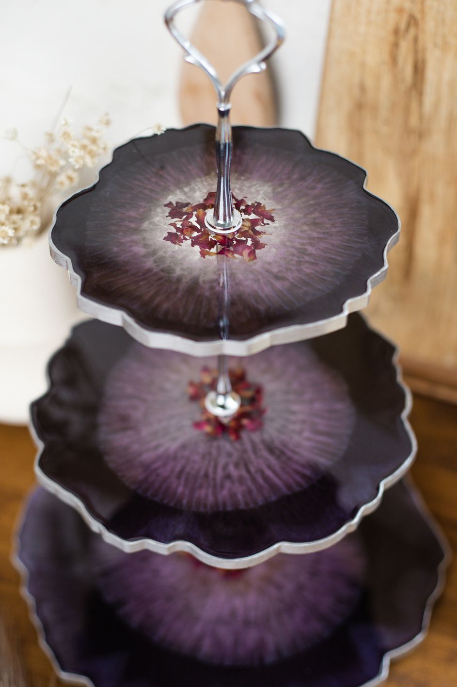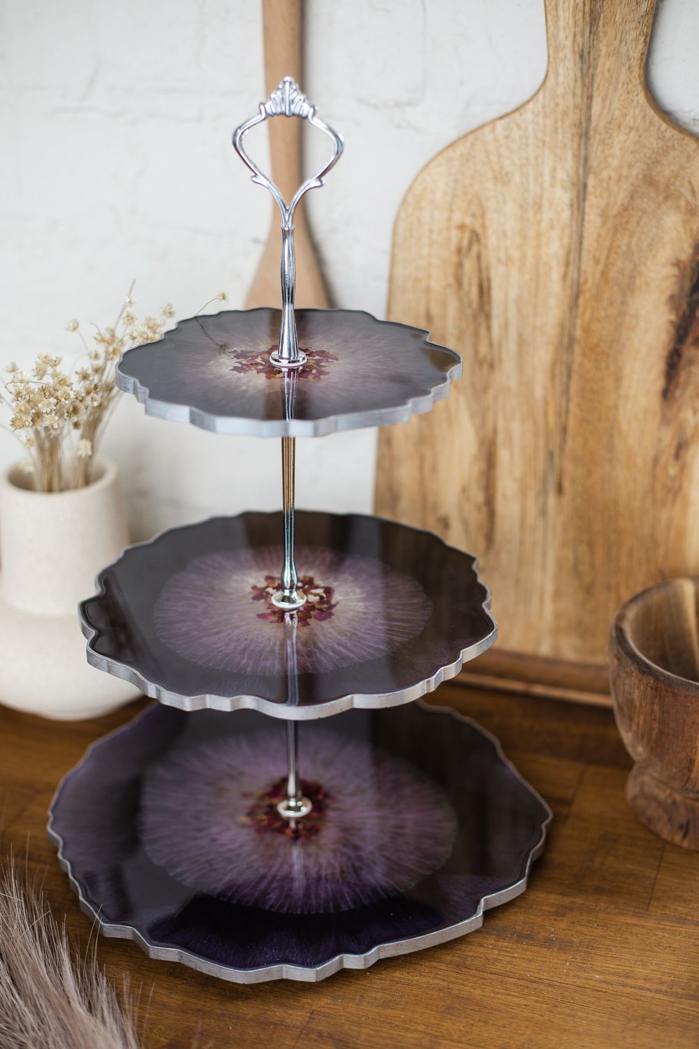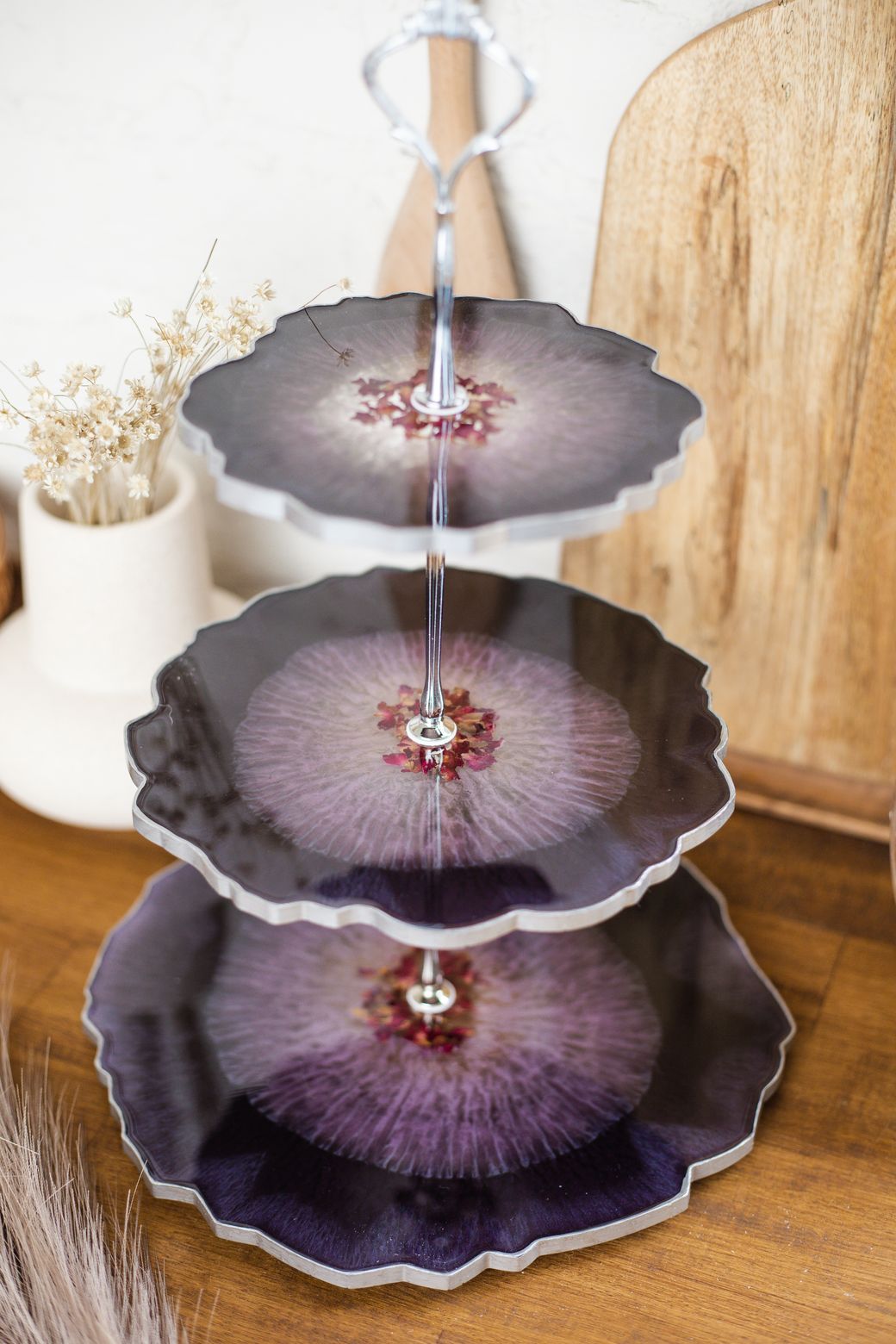 Ez a 3 szintes sütitálca epoxy gyantából, kézzel készült termék, mely egyedi színvilága miatt, igazán különlegessé fogja varázsolni otthonodat. Tehetsz rá például süteményeket, pogácsát, csokoládét, ékszereket, de már önmagában is egy tökéletes dekoráció. Fantasztikus ajándék ötlet bármilyen alkalomra, legyen az születésnap, névnap, esküvő, évforduló, szalagavató, stb.