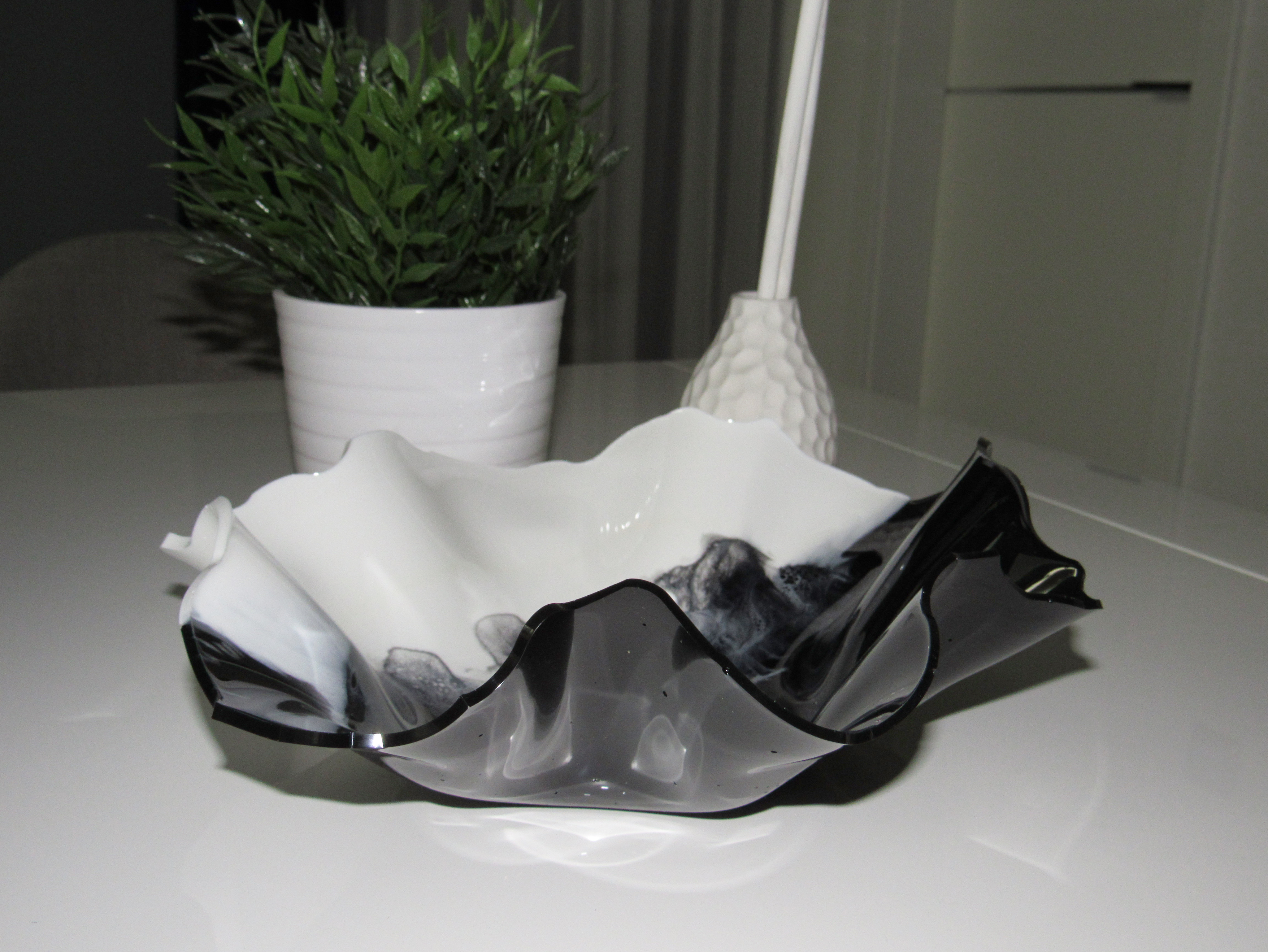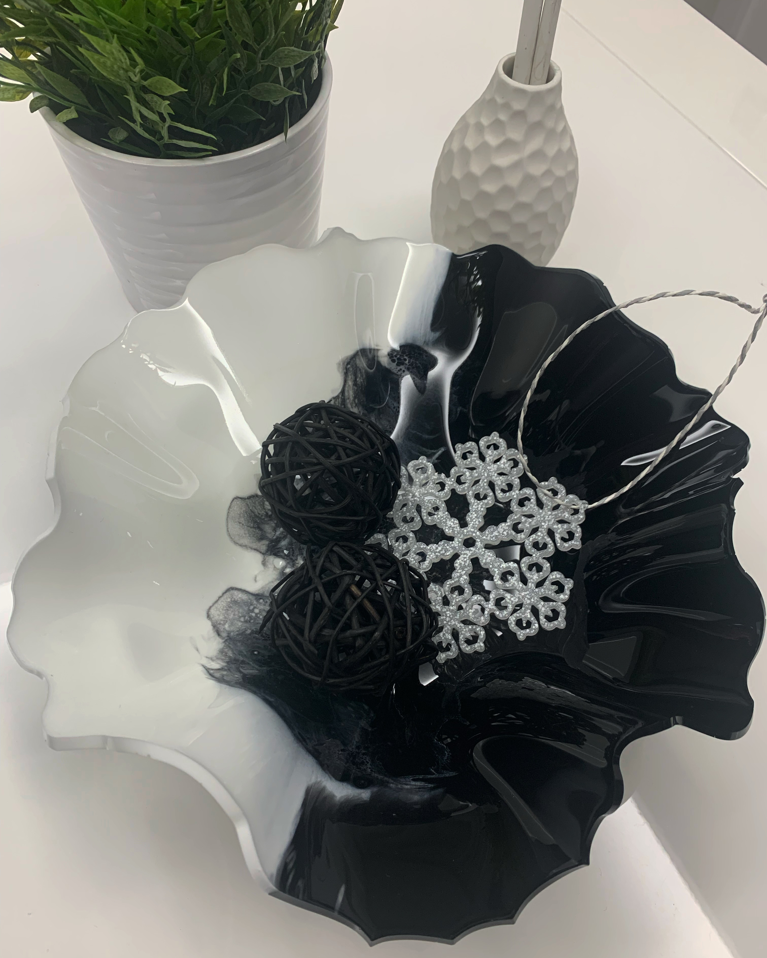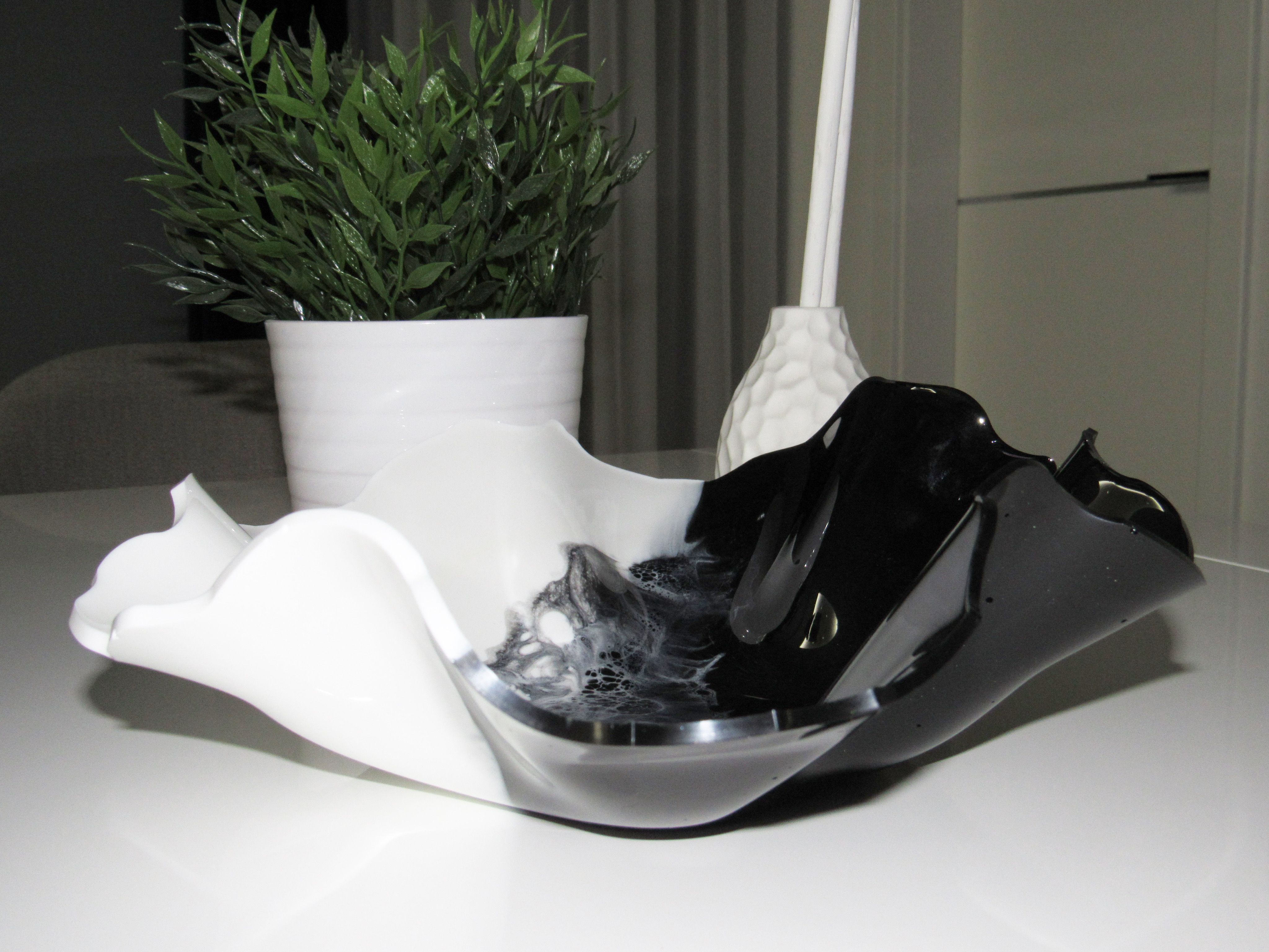 Ez a tálca epoxy gyantából, kézzel készült termék, mely egyedi formája miatt, igazán különlegessé fogja varázsolni otthonodat. A gyantát meghajlítottam, így a tálnak mélységéből adódóan még több funkciója van, mint egy sima lapos tálcának. Például tehetsz bele pogácsát, édességet, ékszereket, de már önmagában is egy tökéletes dekoráció. Fantasztikus ajándék ötlet bármilyen alkalomra, legyen az születésnap, névnap, esküvő, évforduló, szalagavató, stb.