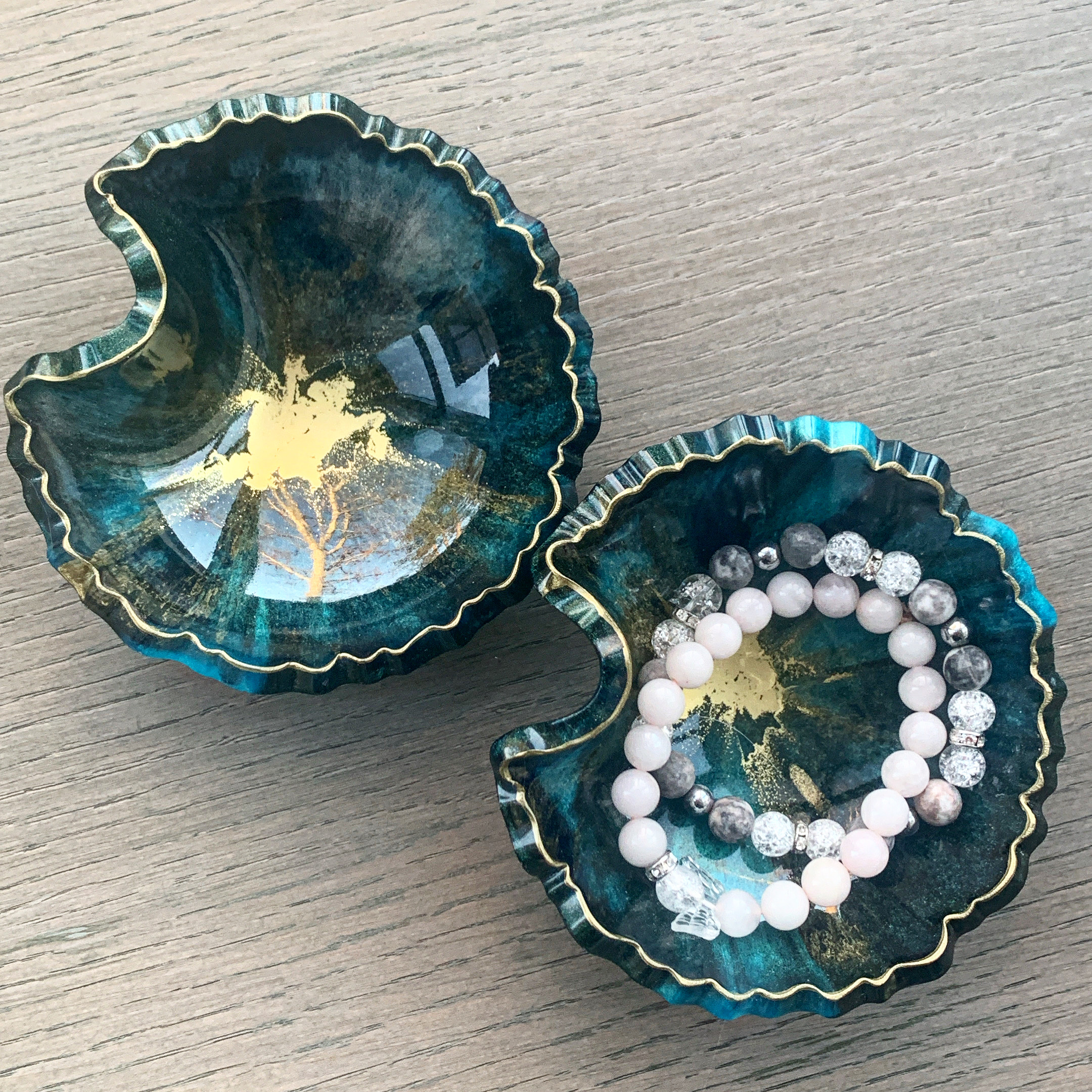Ez a mini hajlított tál szett epoxigyantából, kézzel készült termék, mely egyedi formája miatt, igazán különlegessé fogja varázsolni otthonodat. A gyantát meghajlítottam, így a tálnak mélységéből adódóan még több funkciója van, mint egy sima lapos tálcának. Például tehetsz bele apró magvakat, édességet, ékszereket, de már önmagában is egy tökéletes dekoráció. Fantasztikus ajándék ötlet bármilyen alkalomra, legyen az születésnap, névnap, esküvő, évforduló, szalagavató, anyák napja, stb.