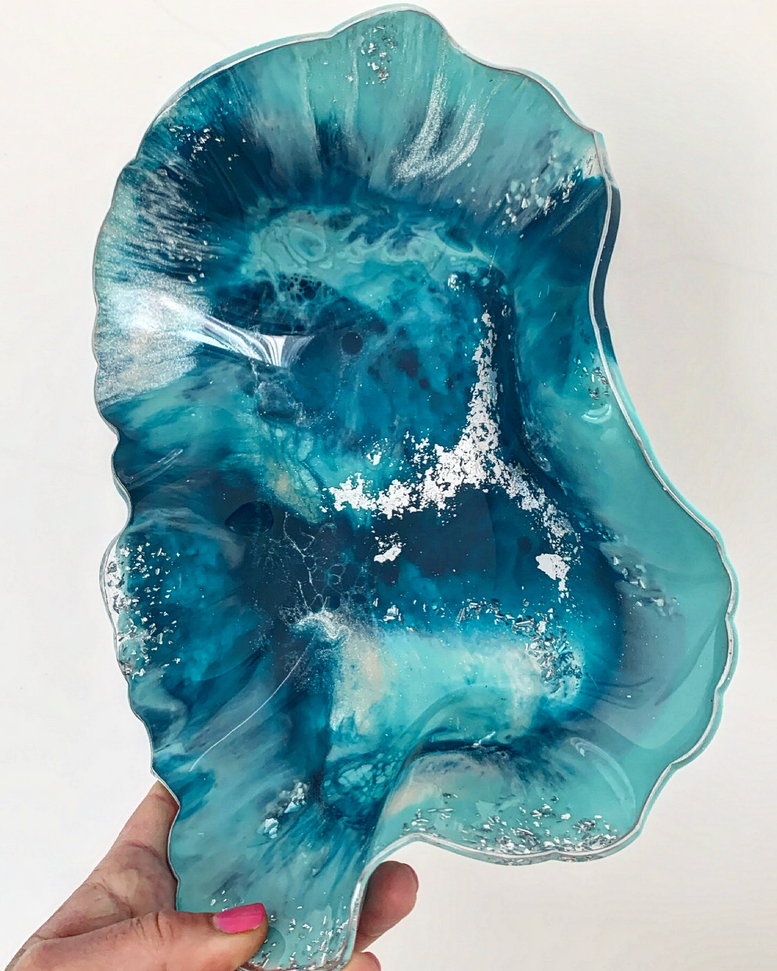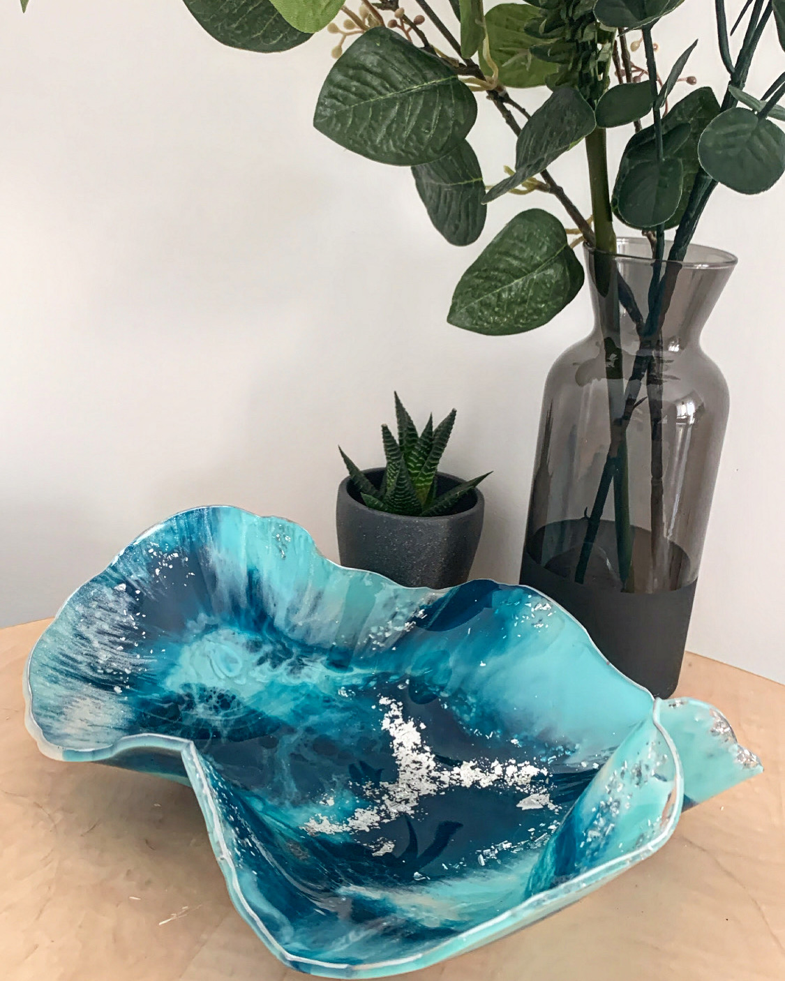 Ez a tál epoxy gyantából, kézzel készült termék, mely egyedi formája miatt, igazán különlegessé fogja varázsolni otthonodat. A gyantát meghajlítottam, így a tálnak mélységéből adódóan még több funkciója van, mint egy sima lapos tálcának. Például tehetsz bele pogácsát, édességet, ékszereket, de már önmagában is egy tökéletes dekoráció. Fantasztikus ajándék ötlet bármilyen alkalomra, legyen az születésnap, névnap, esküvő, évforduló, szalagavató, stb.