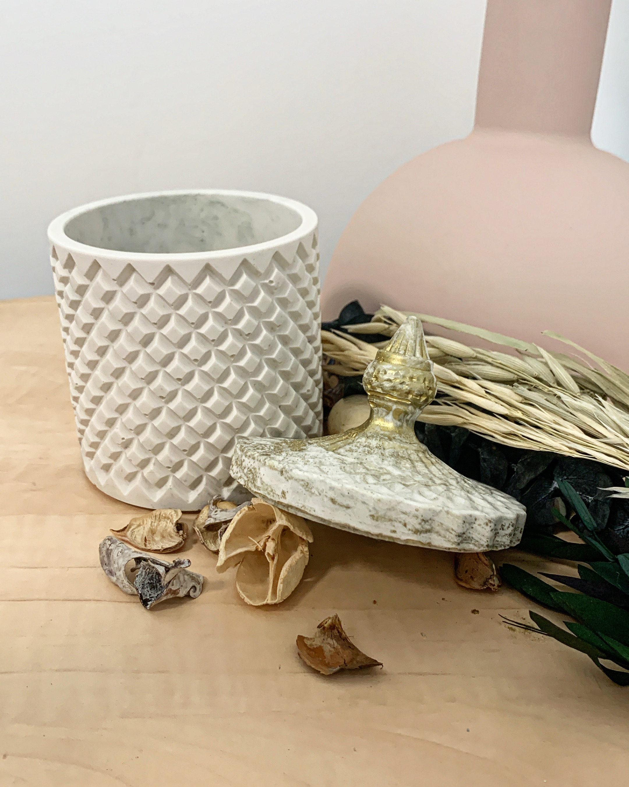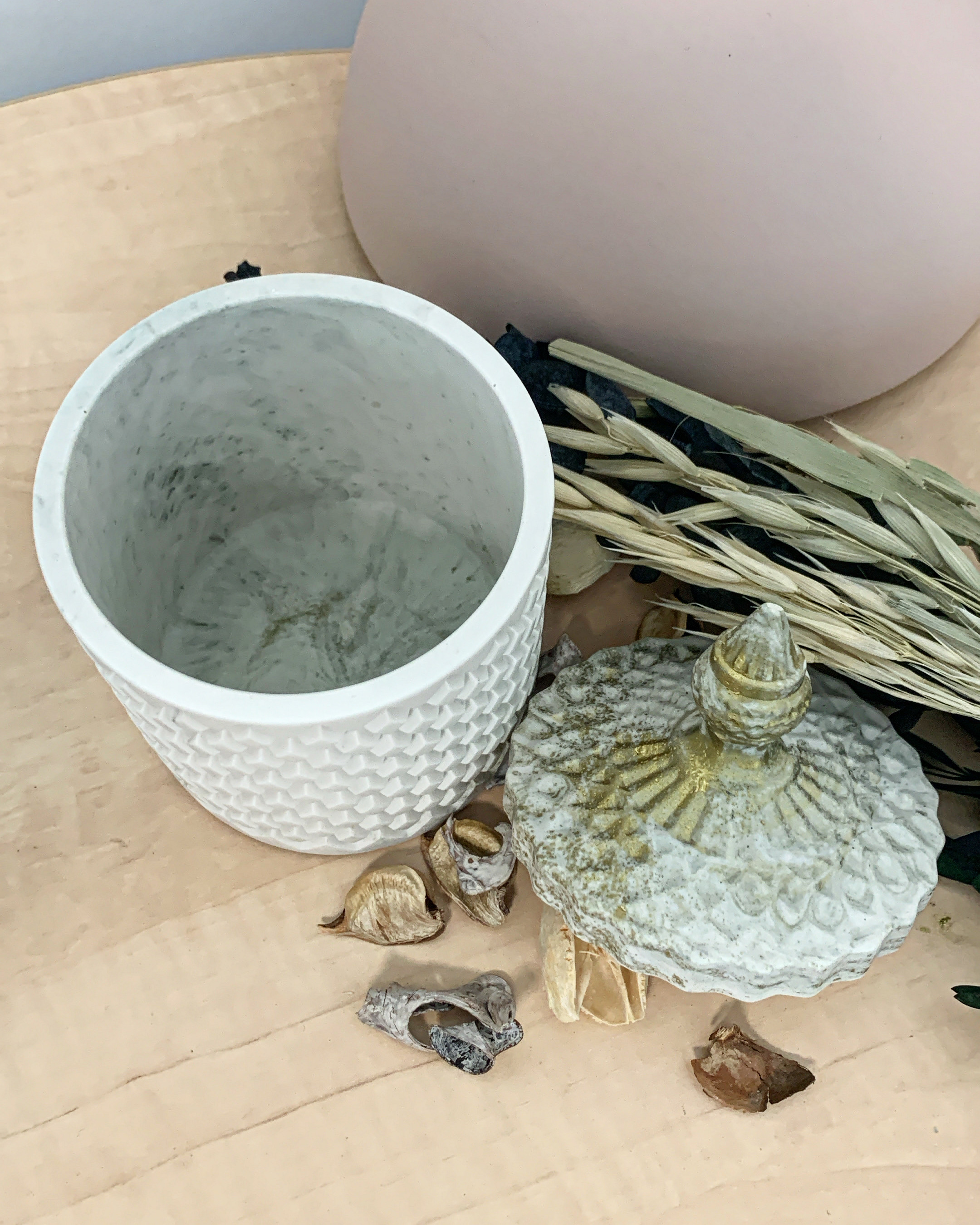 Ez az ékszertartó jesmonite gyantából (akrilgyanta), kézzel készült termék. Felülete matt, beton hatású. Ez a stílus letisztultabb, minden otthonba illő tárgy, így azoknak ajánlom, akik a kifinomultabb, egyszerűbb darabokat kedvelik. Használhatod nagyon sok mindenre: ékszert, vattakorongot, cukorkát vagy egyéb apróbb dolgot, de már önmagában is egy tökéletes dekoráció. Fantasztikus ajándék ötlet bármilyen alkalomra, legyen az születésnap, névnap, esküvő, évforduló, szalagavató, anyák napja, stb.