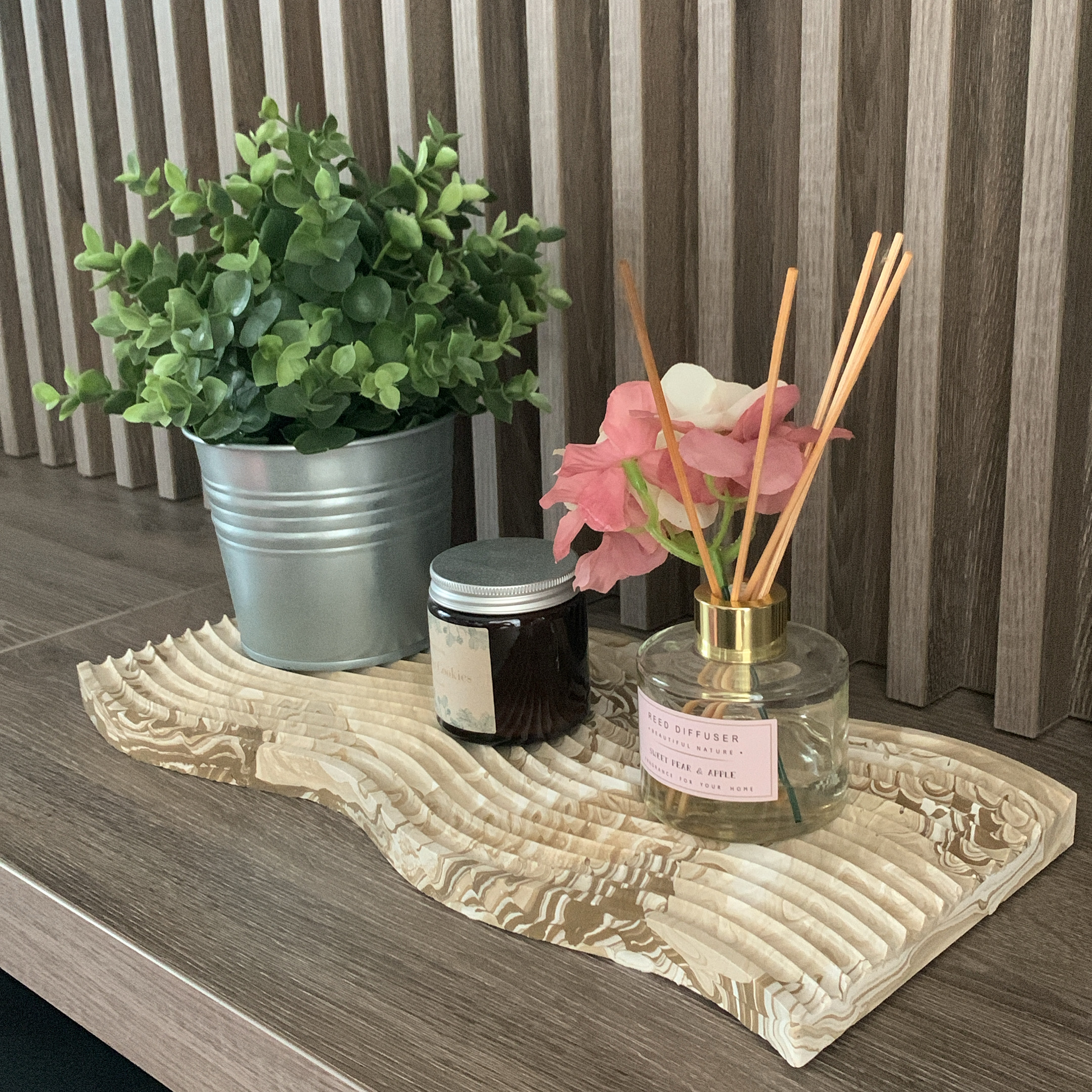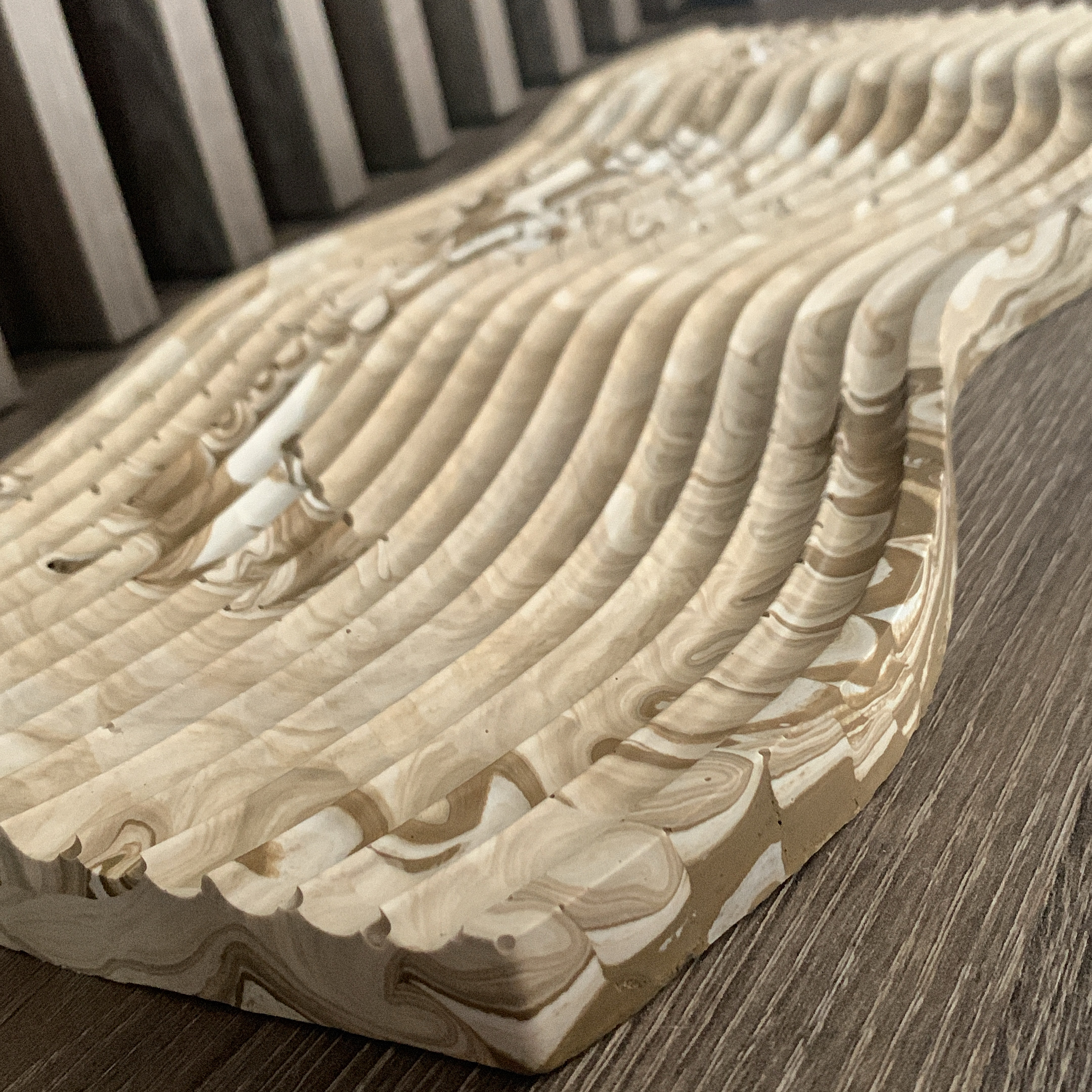 Ez a hullámos tálca jesmonite gyantából (akrilgyanta), kézzel készült termékek. Felülete matt, beton hatású. Ez a stílus letisztultabb, minden otthonba illő tárgy, így azoknak ajánlom, akik a kifinomultabb, egyszerűbb darabokat kedvelik. Használhatod nagyon sok mindenre: gyertyát, vázát, kávét, italokat, tálakat tehetsz rá, de már önmagában is egy tökéletes dekoráció. Fantasztikus ajándék ötlet bármilyen alkalomra, legyen az születésnap, névnap, esküvő, évforduló, szalagavató, anyák napja, vagy csak úgy magadnak is tökéletes!