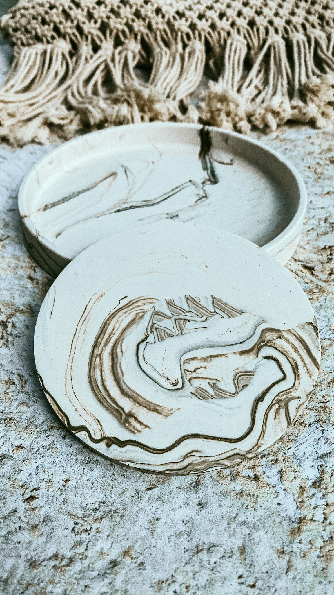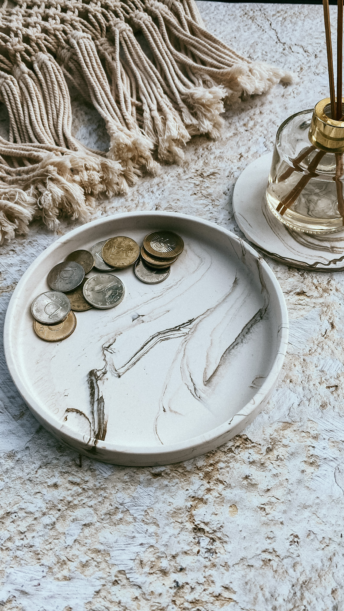 Ez a tál szett jesmonite gyantából (akrilgyanta), kézzel készült termékek. Felülete matt, beton hatású. Ez a stílus letisztultabb, minden otthonba illő tárgy, így azoknak ajánlom, akik a kifinomultabb, egyszerűbb darabokat kedvelik. Használhatod nagyon sok mindenre: gyertyát, ékszert, vázát, kávét, süteményeket tehetsz rá, vagy a szemüveged tárolására is alkalmas, de már önmagában is egy tökéletes dekoráció. Fantasztikus ajándék ötlet bármilyen alkalomra, legyen az születésnap, névnap, esküvő, évforduló, szalagavató, stb.